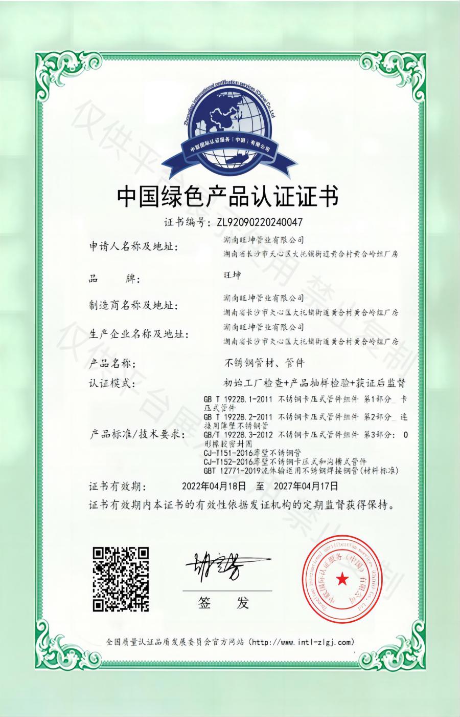 中國綠色產(chǎn)品認證證書